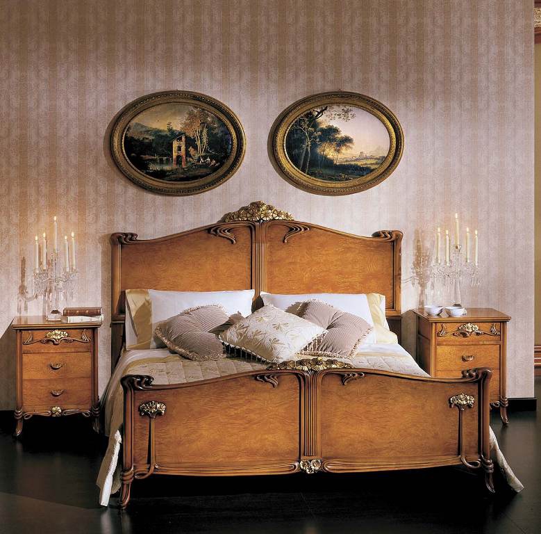Double bed from the Italian manufacturer C. L. Italia. The model is made in the style of art Nouveau. The frame is made of wood. The finish is offered under the color of natural wood. Headboard and footboard decorated with a decorative carving is done by hand. In addition to models are offered bedside tables of similar design.