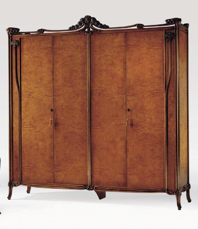 Wardrobe from the Italian manufacturer C. L. Italia. The model consists of four compartments with blind doors. The frame is made from solid wood. Finish offered a choice from a range of companies. The doors are locked. The model is decorated with decorative carvings. The Cabinet is made in classic style.