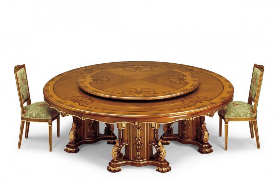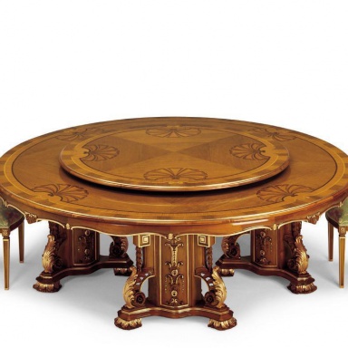 Dining table from the Italian manufacturer Citterio. The model is made in classic style. Round top is located on four massive legs. Material - solid wood. Finish to be selected from the range of the company. In addition to models are offered chairs in the same design.