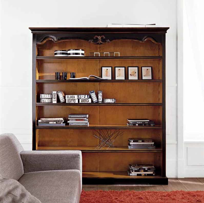 Bookshelf from Italian manufacturer Flai. The model consists of six open shelves of the same size. The frame is made from wood. Color finish is available in two types: white with gold or black with gold. Available finishes natural wood color. The design complements the carved facade. The model is made in classic style.