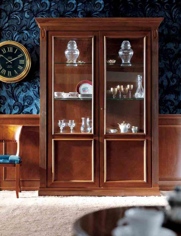 Wardrobe from the Italian manufacturer Formichi. The model is made in classic style. The frame is made from solid wood. Shutters two types of wood and glass. Internal filling - glass shelves. The doors are locked. Roomy model will perfectly fit the interior of your home.