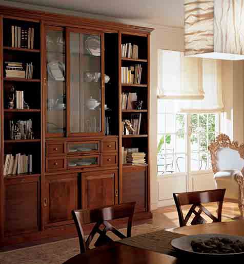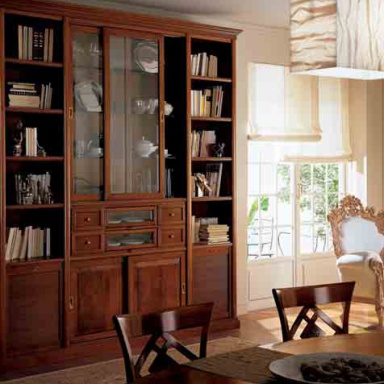 Bookshelf from Italian manufacturer Formichi. The model consists of drawers, open and closed shelves. The frame is made of wood. Finish to be selected from the range of the company. Sash available in glass and wood. Decorative accessories made of metal. The Cabinet is made in classic style.