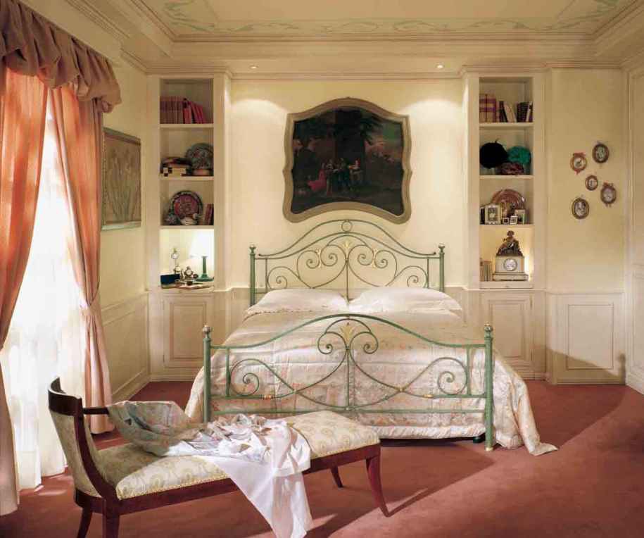 Double bed from Italian manufacturer Formichi. The model is made on the frame made of metal. Headboard and footboard made of metal. The model is decorated with decorative elements and twisted. Color finish of your choice from the product range of the company. The bed is made in classic style.
