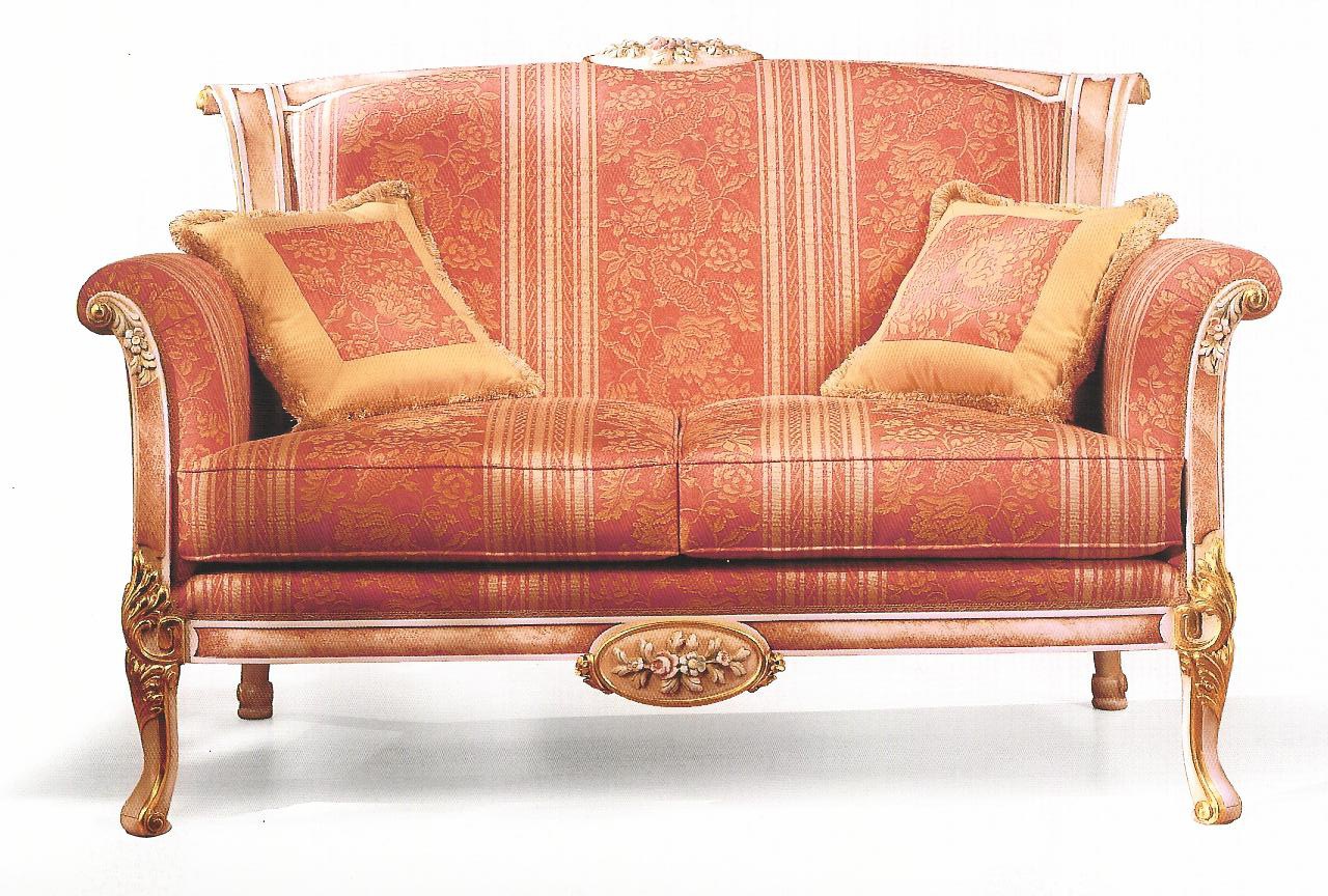 A double sofa from Italian manufacturer Citterio. Model on a frame of solid wood. Feet decorated with hand carved. Seat and back covered with textiles. Filler - polyurethane foam. In addition to models are offered cushions of similar design. The sofa is made in a classic style.