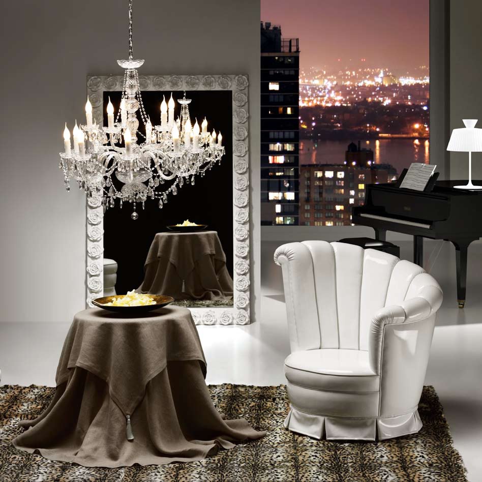A chair from the Italian manufacturer Halley. The model resembles the shape of the sink. The frame is completely hidden. The upholstery is available from white skin. Finish - gloss lacquer. A distinctive feature of the model armrests of different heights. The model is made in art Deco style.