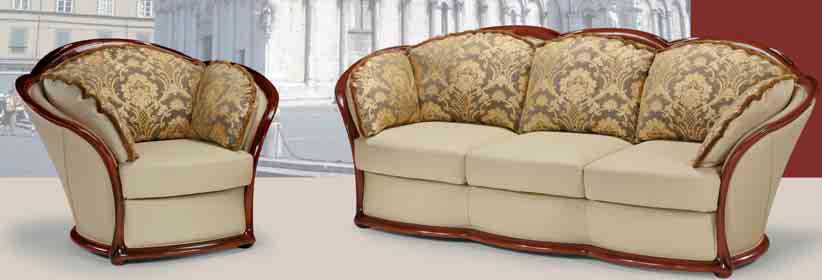 Capriccio sofa from Italian manufacturer BM Style. The frame is made from solid wood with glossy varnish, filler - foam, upholstery - textiles from a range of campaigns. Seat and back are removable. The design of complementary decorative pillows. A great model for living room in classic style. Product color mocha.