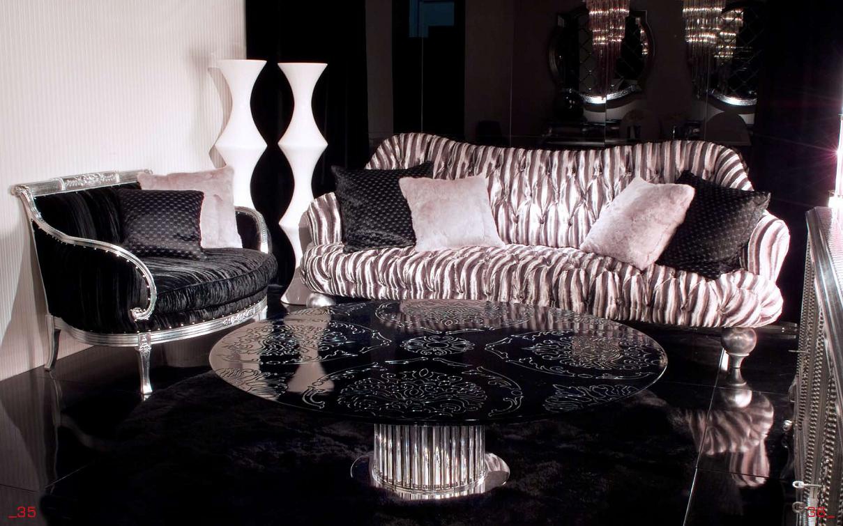 Sofa set from the Italian manufacturer Cappellini Cornelio. Set includes: two seater sofa, armchair, table with top made of Murano glass. Set is made in the style of Louis XVI.