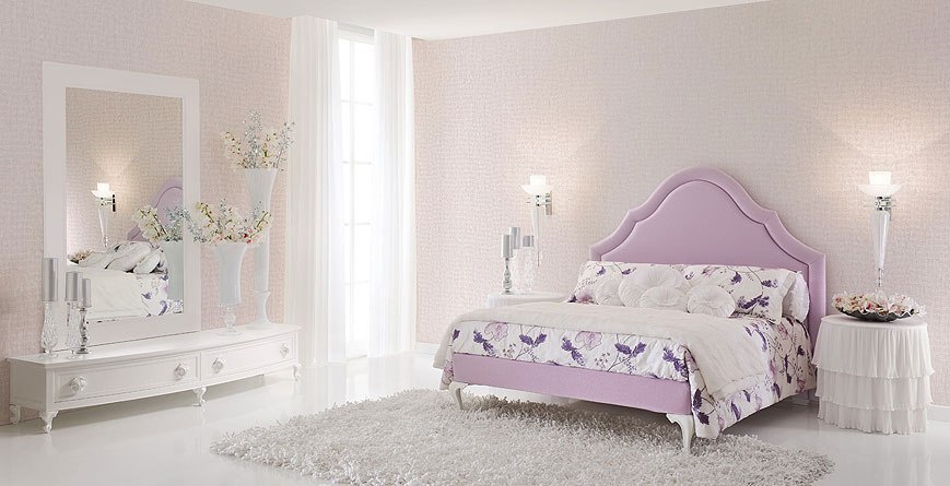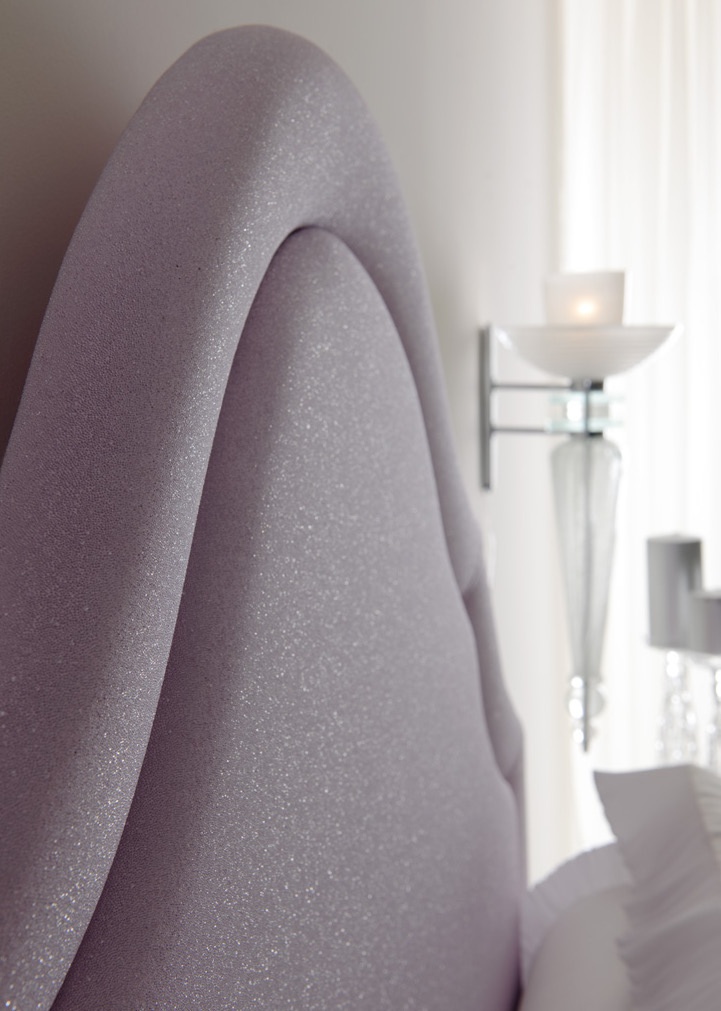 Double bed from Italian manufacturer Halley. Model on carved legs made of wood. Offered lacquer finish in white. The frame is completely hidden. Figure the head is covered with textiles. Color option to choose from a range of companies. The bed is made in classic style.