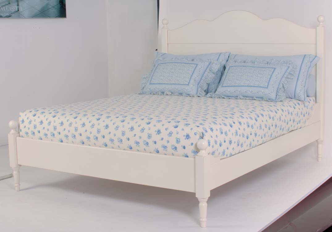 Single bed from Italian manufacturer Halley. Model with a high semi-circular base. Legs and frame made from solid wood. The finish is offered in white. The model is decorated with decorative columns terminating in balls. In addition offers decorative pillows similar design. The bed is made in classic style.
