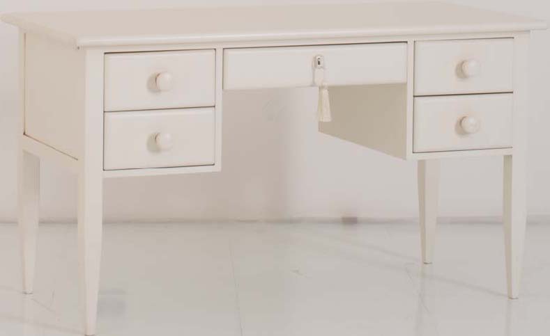 Desk from the Italian manufacturer Halley. Model long legs. The table top is rectangular. Complete the model of the drawers along the edges. The Central drawer has a lock. The model is made of solid wood. Color option - white. The model is made in modern style.
