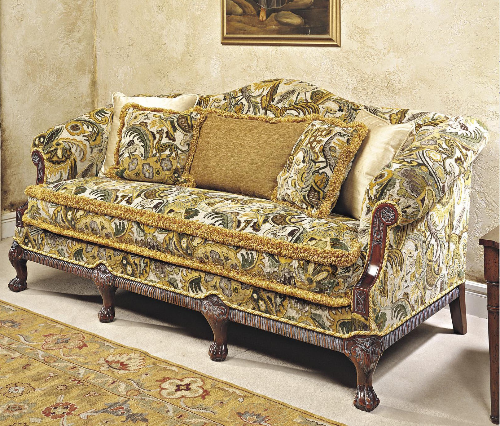 Three seater sofa from Italian manufacturer Francesco Molon. The frame is made of wood. Upholstery - textiles from the company portfolio. The model will perfectly complement the classic interior of the living room.