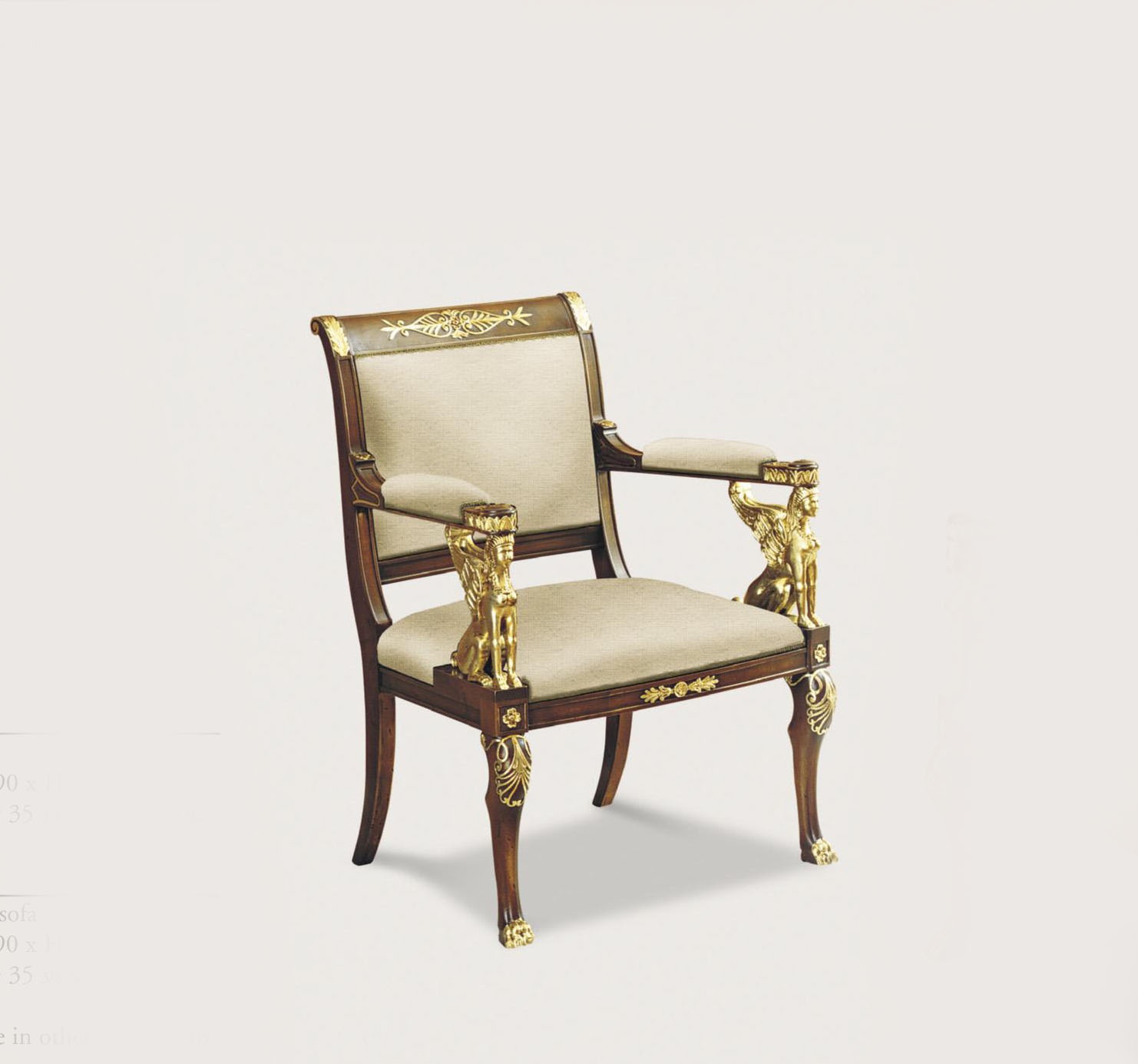 Chair with padded armrests from the Italian manufacturer Francesco Molon. The frame is made of wood. Upholstery - textiles from the company portfolio. The model will perfectly complement the classic interior of the living room.