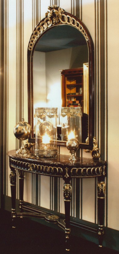 The console, from the Italian manufacturer Ceppi. the frame is made of wood. The model is decorated with inlay and gilding. The console can complement the mirror in a frame similar in design. The model is made in classic style.