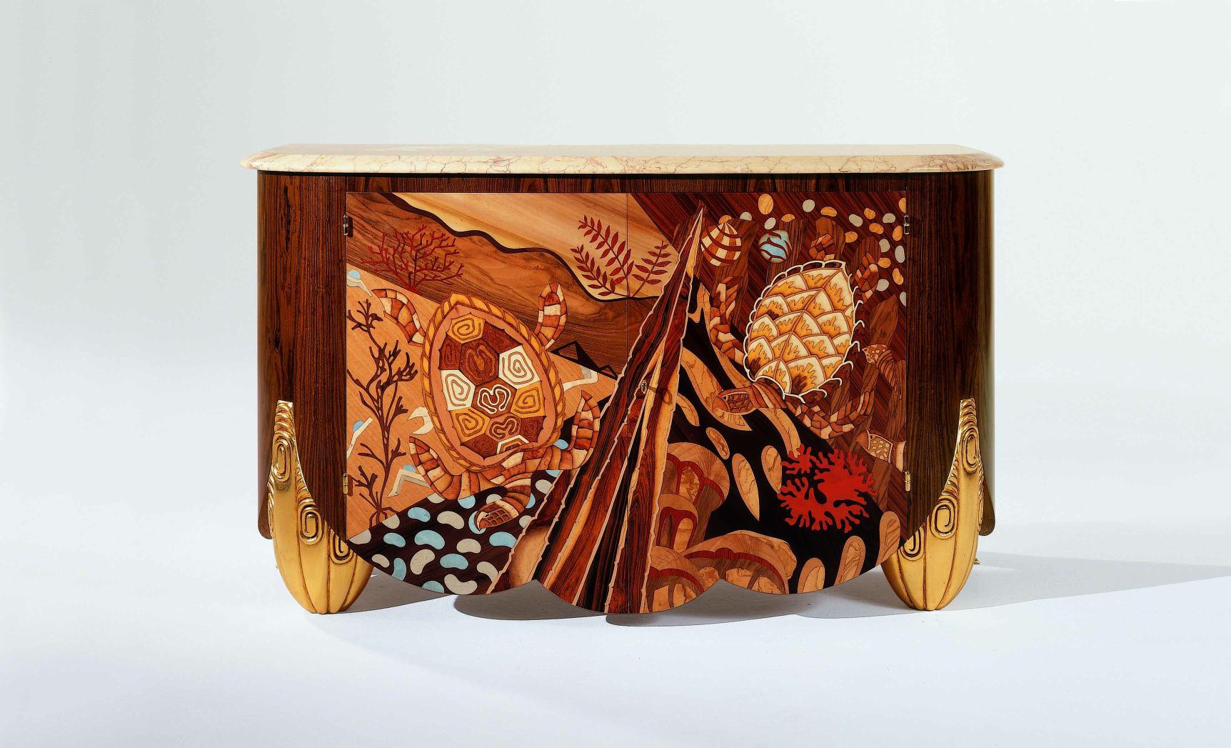 Riedizioni a chest of drawers from Italian manufacturer Colombo Stile. The product is made of solid wood. Modern design, unique pattern, made by hand, good combination of marble and wood. The model successfully fit into the interior of your living room and give it a unique look.