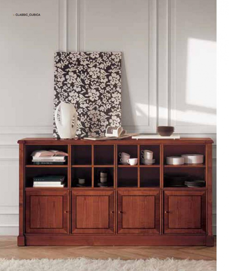 Dresser Classic Cubica, from Italian manufacturer Minotti Colezzioni. The frame is made of drevesiny Finish varnish from the company portfolio. The model is made with four doors and drawers. The chest will perfectly complement the classic interior of the living room.