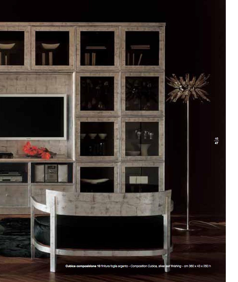 Double Fashion Cubica sofa from Italian manufacturer Minotti Collezioni. The frame is made of wood. Upholstery - textiles from the company portfolio. Finish - silver. The sofa is made in art Deco style and perfectly complement the interior of the living room.