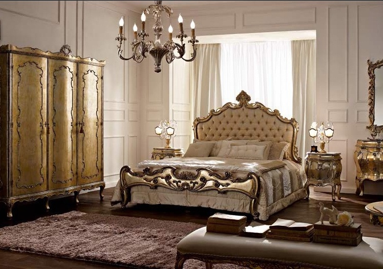 Headsets for bedrooms from Italian manufacturer Andrea Fanfani. Set includes wardrobe, double bed and bedside tables. Material - solid wood. Finish offered a choice from a range of companies. Headboard and footboard decorated with carvings and handmade with stitch-Capito. The model is made in classic style.