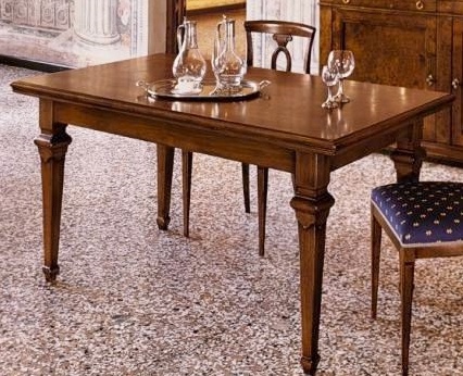 Dining table from the Italian manufacturer Moletta Mobili. The model is made of wood. The table top is rectangular. Legs shaped form decorated with carvings. Finish - gloss lacquer. Polished model in manual. Table executed in classical style.
