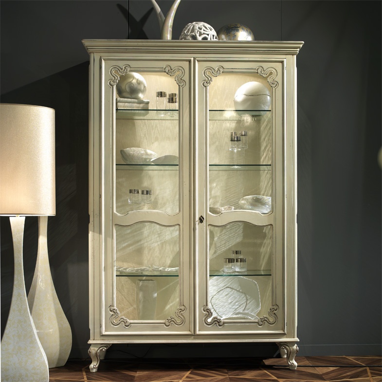 Showcase with two doors from the Italian manufacturer Arte Brotto. The wooden frame is ideal for models of the classical style. Color - white. The perfect solution for storing utensils.