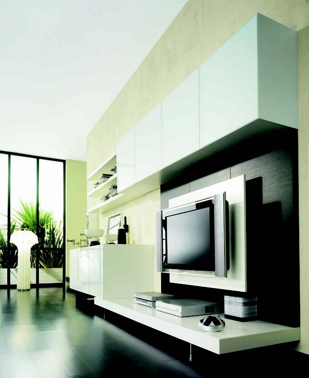 Shelving system from Italian manufacturer Prealpi. The system is designed to store books and various things, there are designated areas for the TV screen. The model is made in accordance with modern standards. Color solution of the presented model is made in a combination of two contrasting colors.