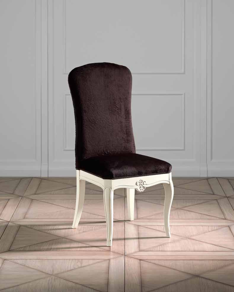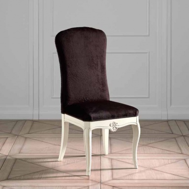 A chair from the Italian manufacturer Prestige. The frame is made from solid cherry finish white lacquer, decorated with handmade carving. Upholstery - textiles, fur or leather from the company portfolio. The product will perfectly complement the classic interior.