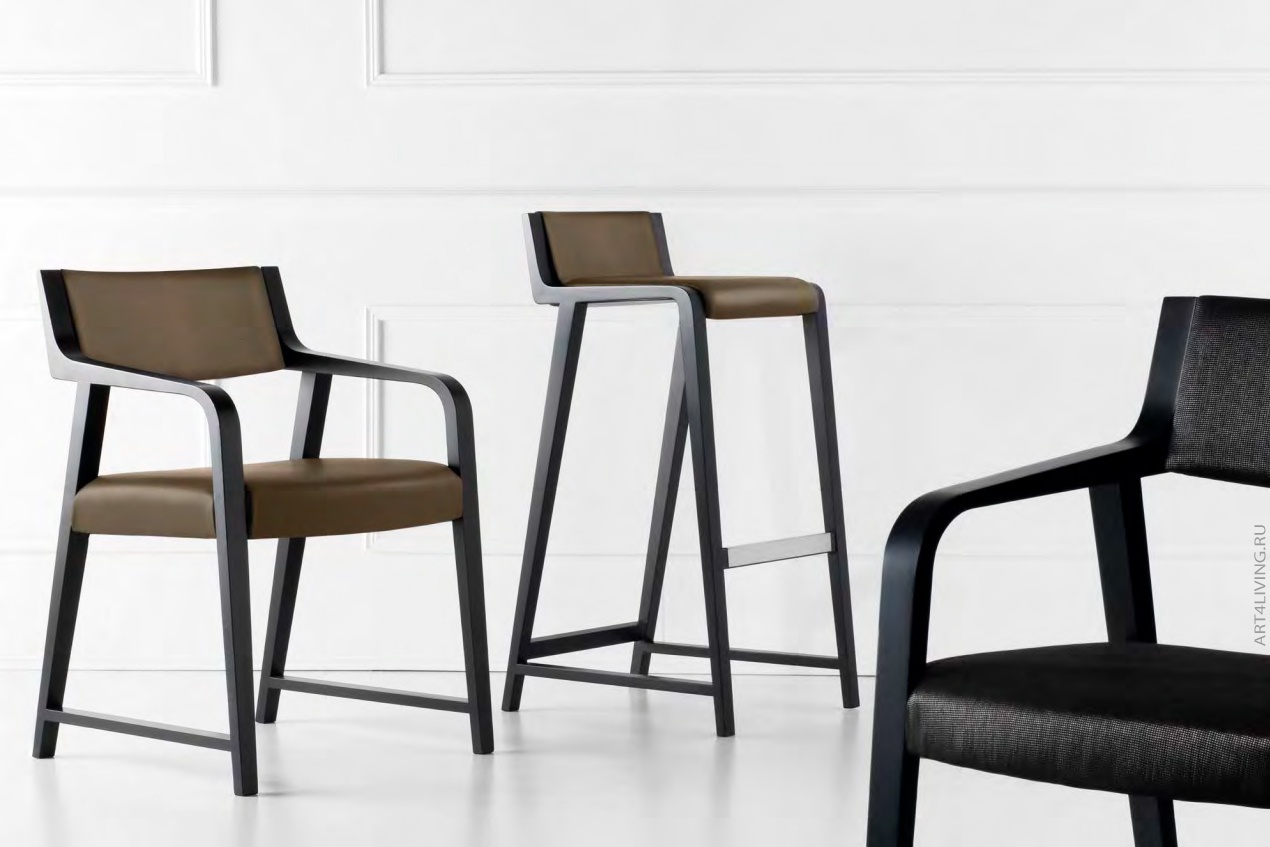 Chair Linus from the Italian manufacturer Past.... The model is made from solid wood in black lacquer finish, upholstered in leather. Bar chair is suitable for modern interiors. Product color black.