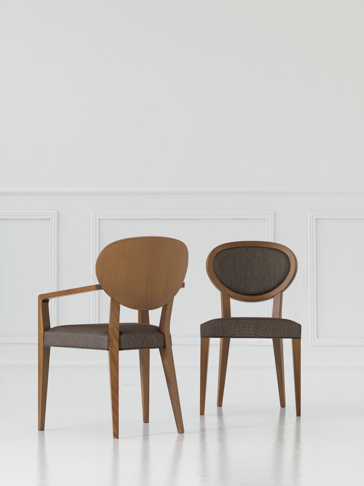 The Chic chair from the Italian manufacturer Past.... The frame is made from solid wood, upholstery - textiles from a range of campaigns. The model is available with armrests. Good choice for dining room in modern style. Colours in stock.