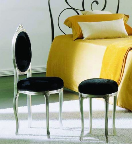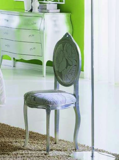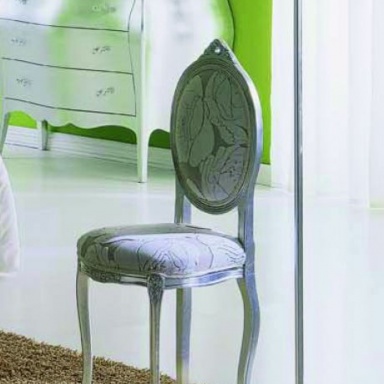 Chair with upholstery Delicia from Italian manufacturer Bontempi Casa. Classic model with round back. The frame is made of wood. Upholstery - textile fabric. The model will decorate the living room in a classic style.
