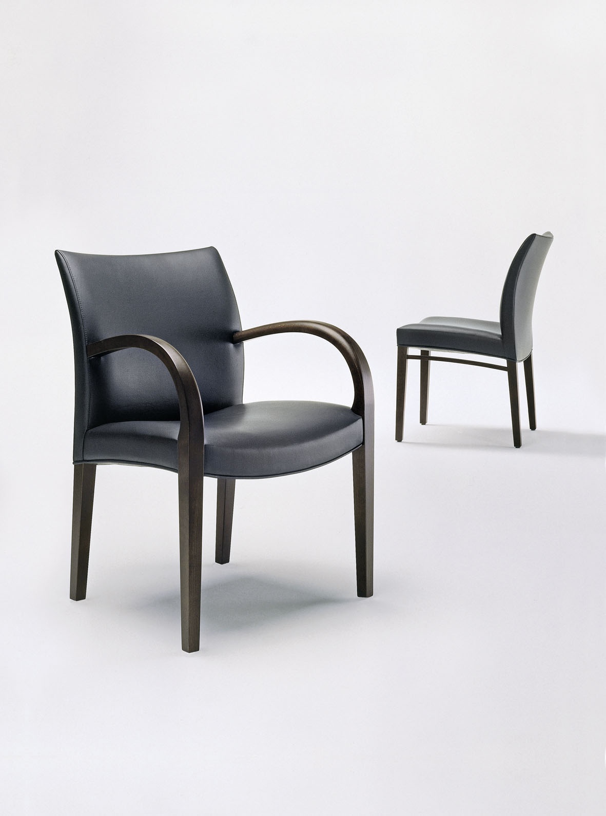 The Sunset chair from the Italian manufacturer Past.... The frame is made from solid wood, upholstery leather. The back is slightly curved. An excellent choice for office furniture in modern style. Colours in stock.