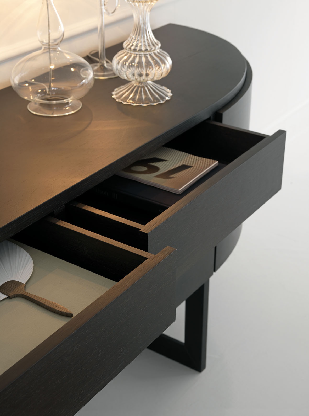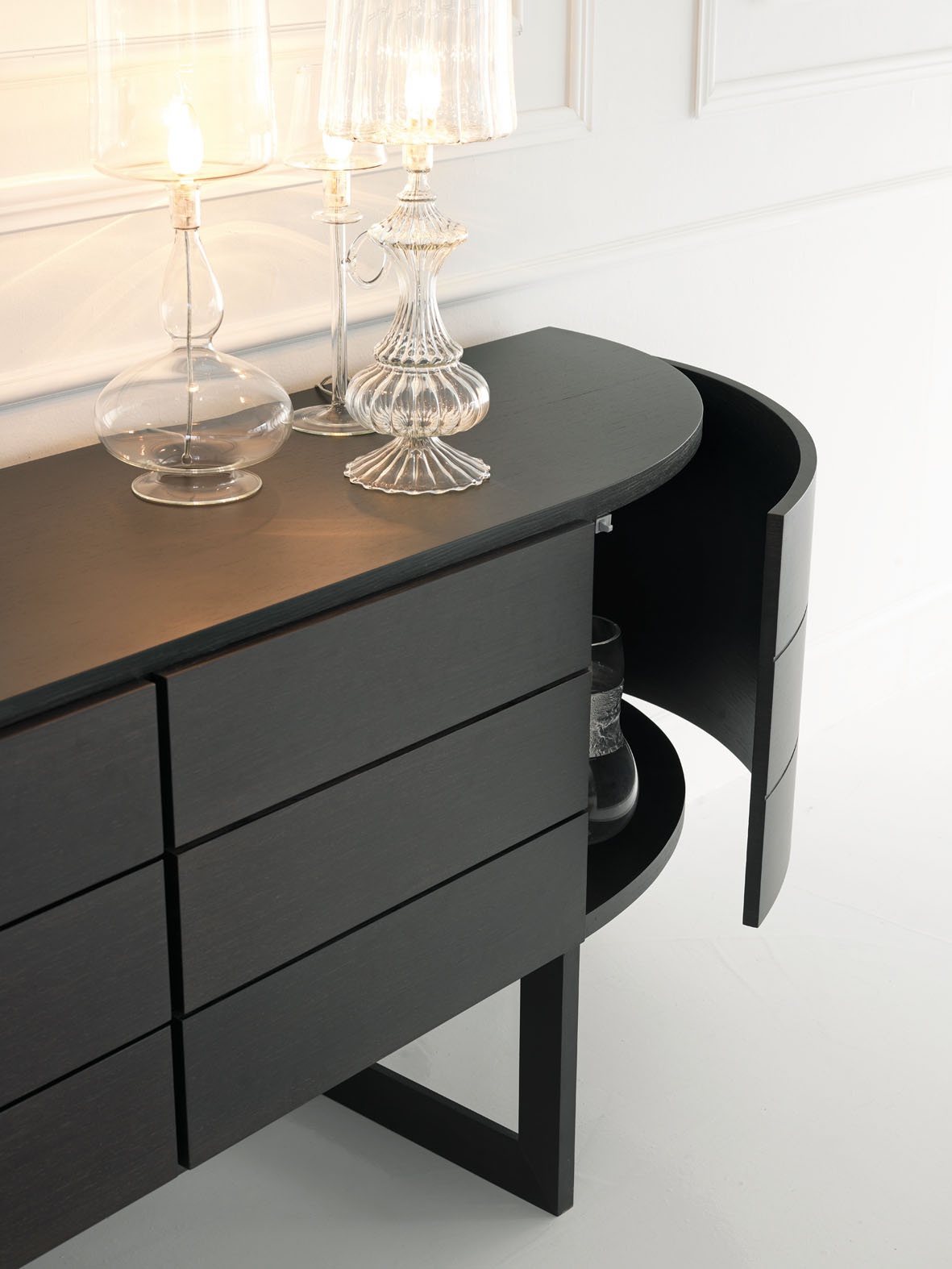 Dresser Diva from the Past ... the Italian manufacturer. The model is made from solid wood in the finishing varnish. Lovely dresser with drawers and hinged side doors. A good choice for living room in modern style. Product color black.