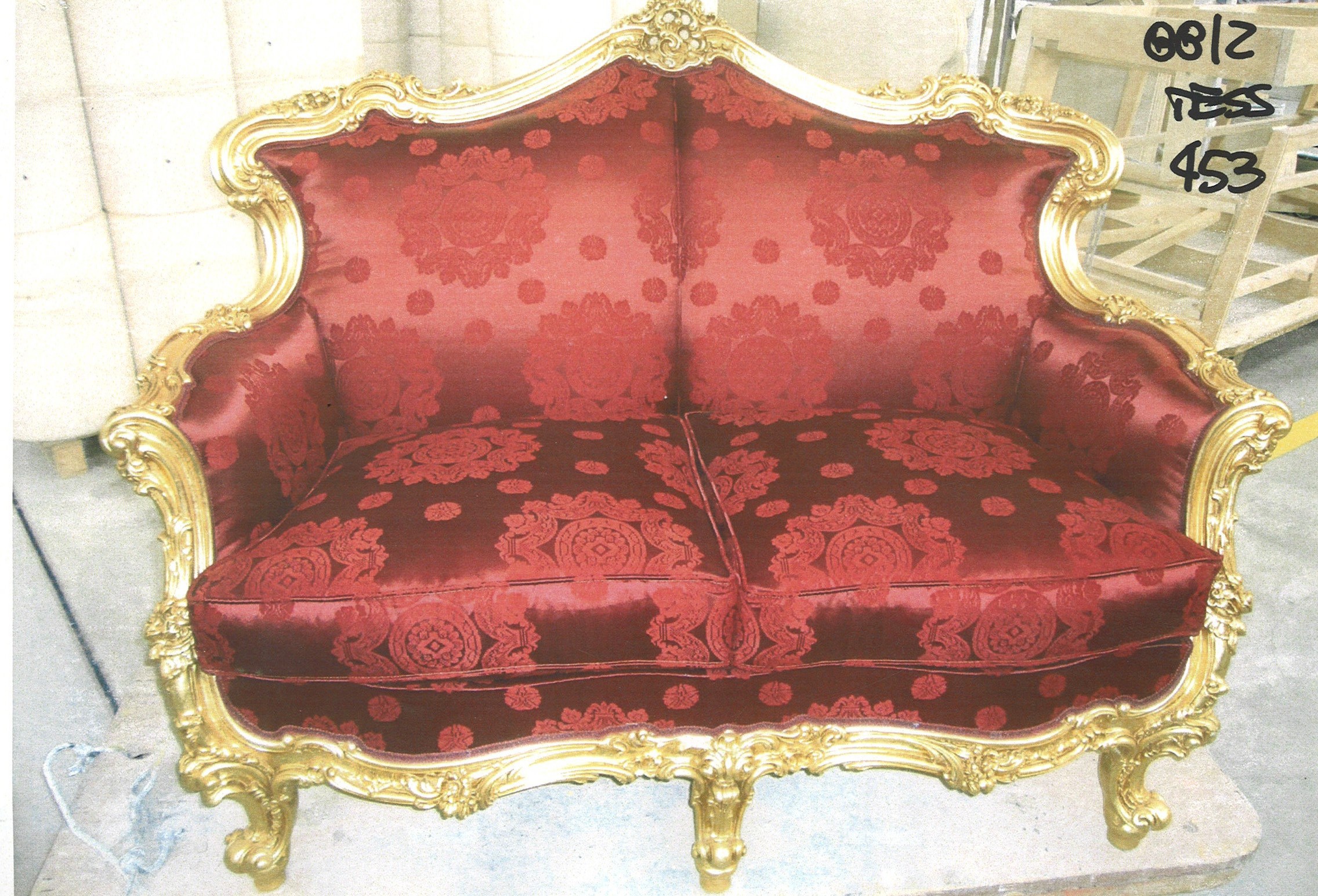 | Description: | Double sofa Omero. The frame is made from solid. Filling - polyurethane foam of different densities. The backrest, armrests and base are embellished with hand carved, gold leaf finish code 10. Upholstery textile 453/C |