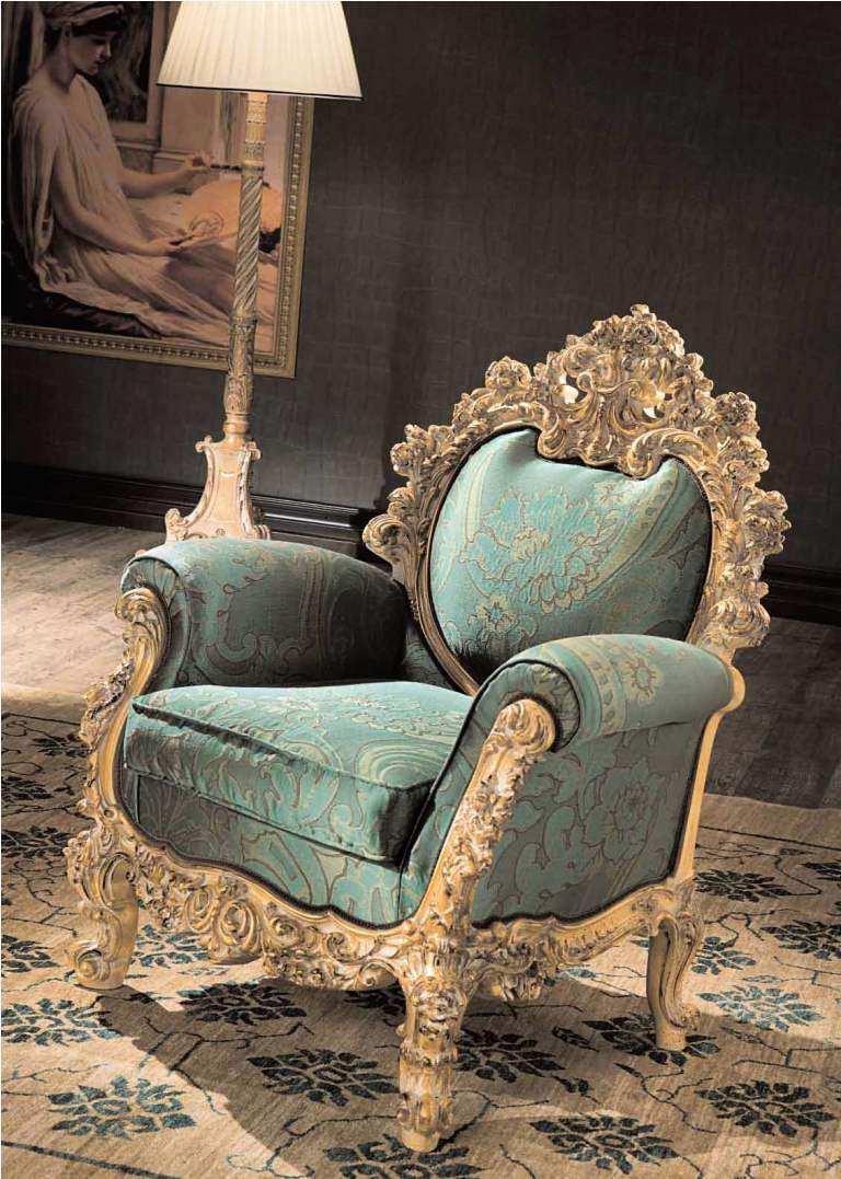 A chair from the Italian manufacturer Silik. The model is made in classic style. The frame is made from solid wood, painted in Golden color. The armrests in the form of scrolls. Upholstery textile to choose from a range of companies. Legs and back are adorned with decorative carvings.