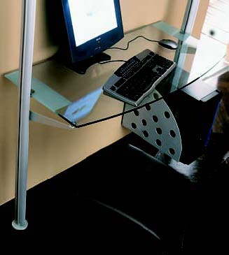 The rack is from the Italian manufacturer Prealpi. The rack has the steel frame, metal shelves. Just installed the glass table-top. There is a place for televisora or computer. Model prikreplen to the wall and the floor.