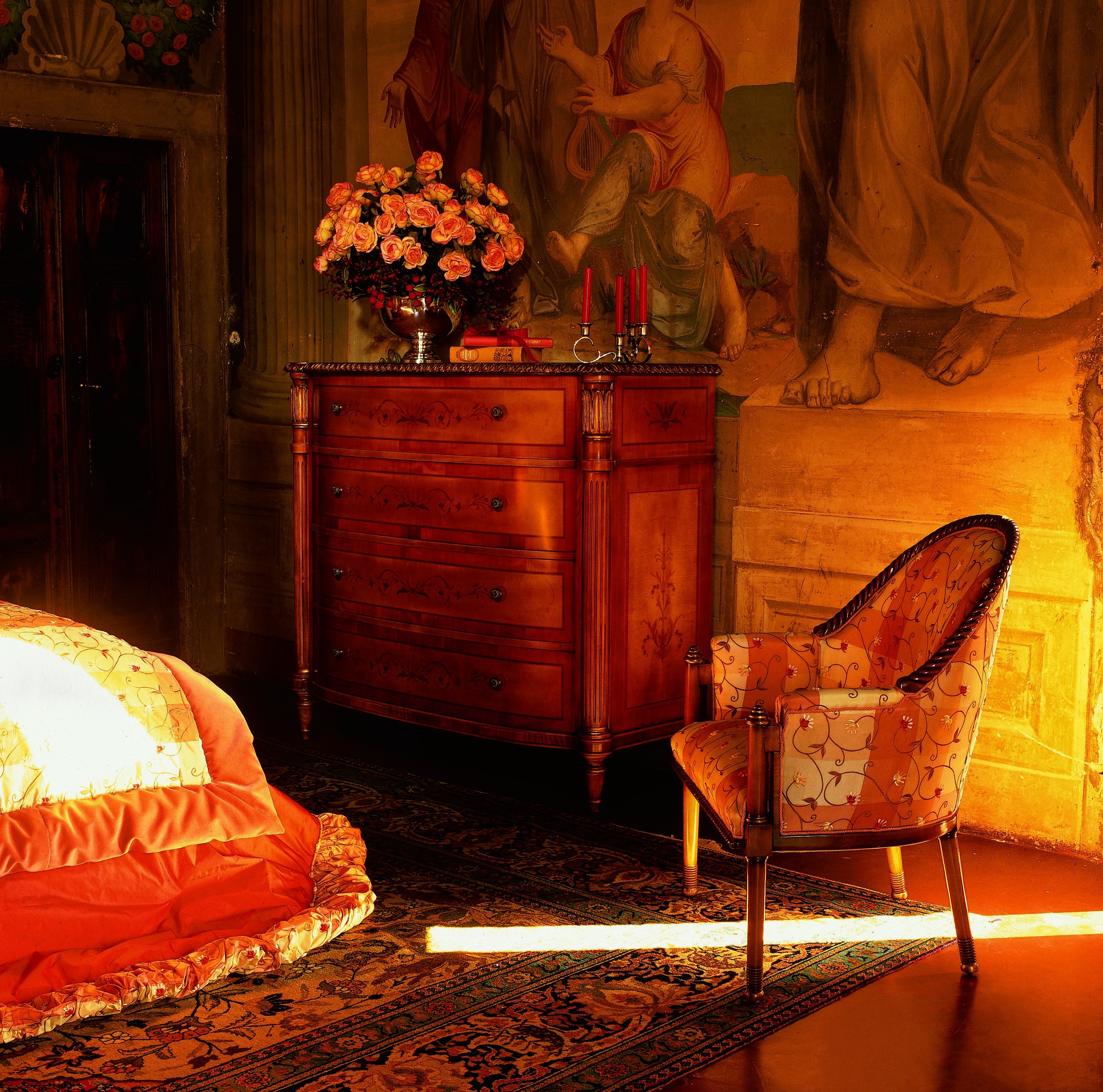 A chest of drawers from Italian manufacturer Fratelli Sanvito. The model is made from solid natural wood finish with gold leaf. Decorative accessories - metal. Lovely chest of drawers with four drawers is suitable for bedroom in classical style. Product color natural wood.
