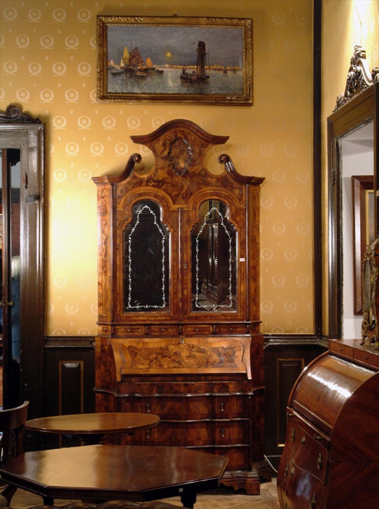 Sideboard, from the Italian manufacturer Mice. The frame is made of wood. Finish - lacquer, carved and inlaid. The doors are made of glass. Drawers are made with metal fittings. The model will perfectly complement a classical interior.
