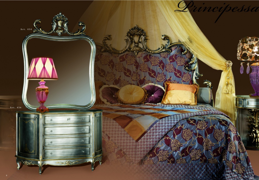 Dressing table from the Italian manufacturer Mida. The mirror and nightstand carved, hand-painted antique silver and gold leaf. Will perfectly decorate your bedroom.