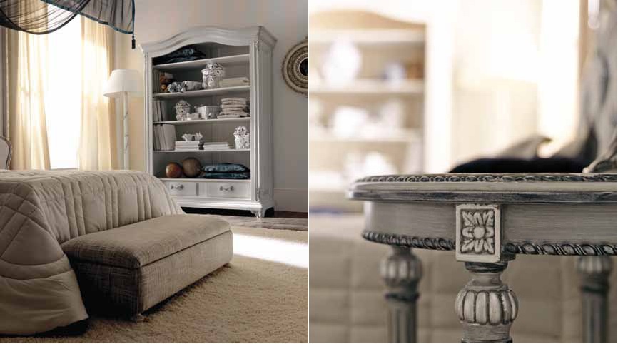 Rack Notte Fatata from the Italian manufacturer Savio Firmino. The rack is made of natural wood in classic style. The model provides for a child's room. Finely decorated with gilded elements, deep shelves, drawers with shaped metal fittings is the perfect solution for a child's room.