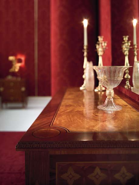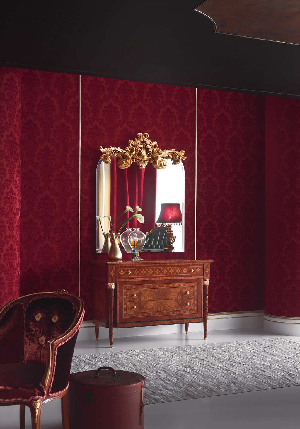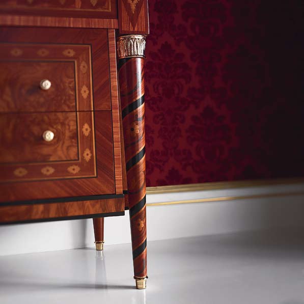 Console from the Italian producer Paolo Lucchetta. The console has drawers. The model has its elaborate decor. The colours are brown tones.
