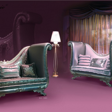 Sofa, decorated hand-carved from Italian manufacturer Mida. The structure is solid wood. Upholstery - fabric content - polyurethane. Trim, handmade on wood.