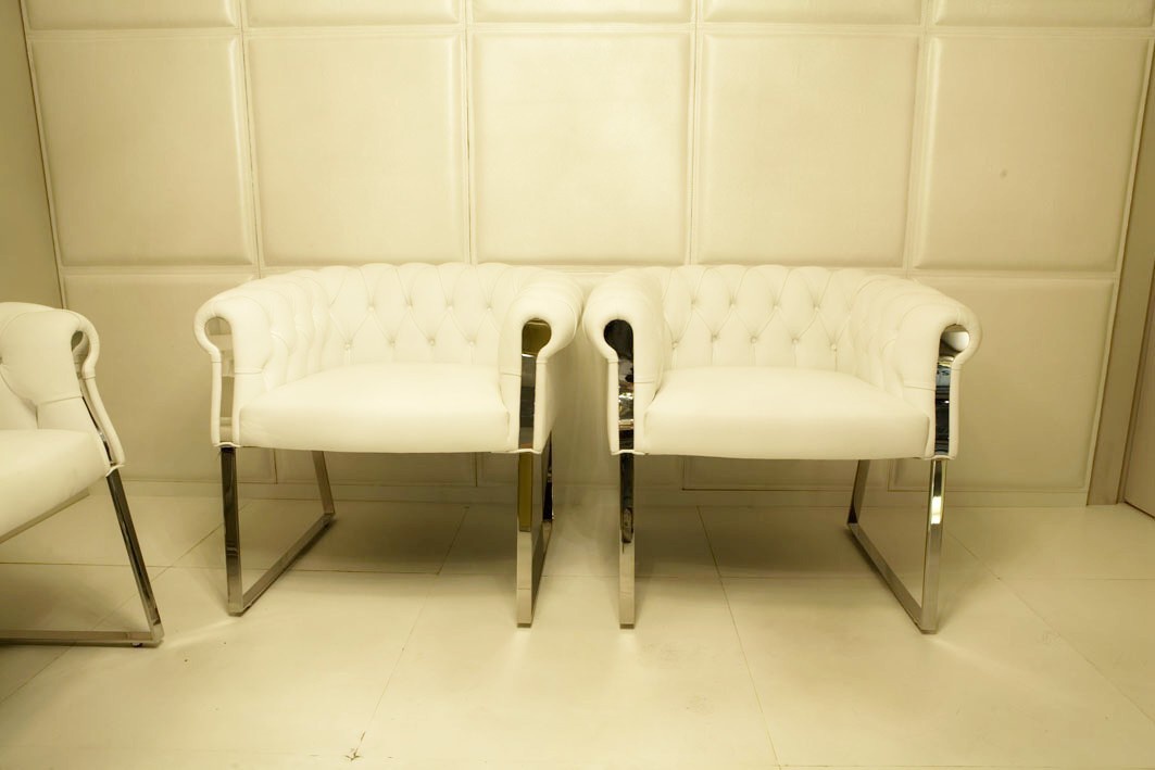 Living room chair in contemporary style,the Dharma from the Italian manufacturer Sm Divani. Frame - painted by powder method steel. Filling: seat cushion - polyurethane foam of different densities. Upholstery - leather, any color and texture from assortment. The back is decorated with a decorative screed Capito.