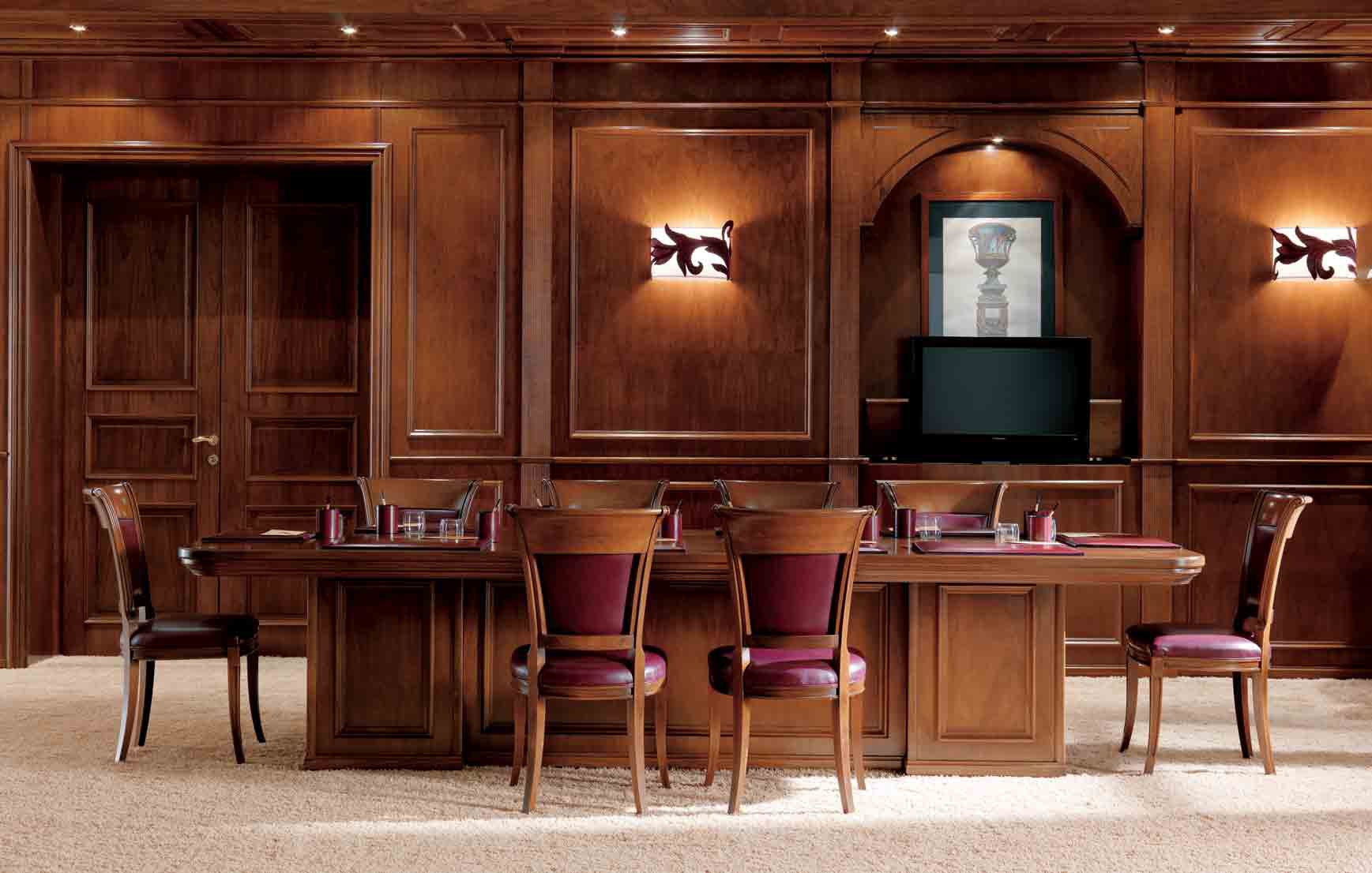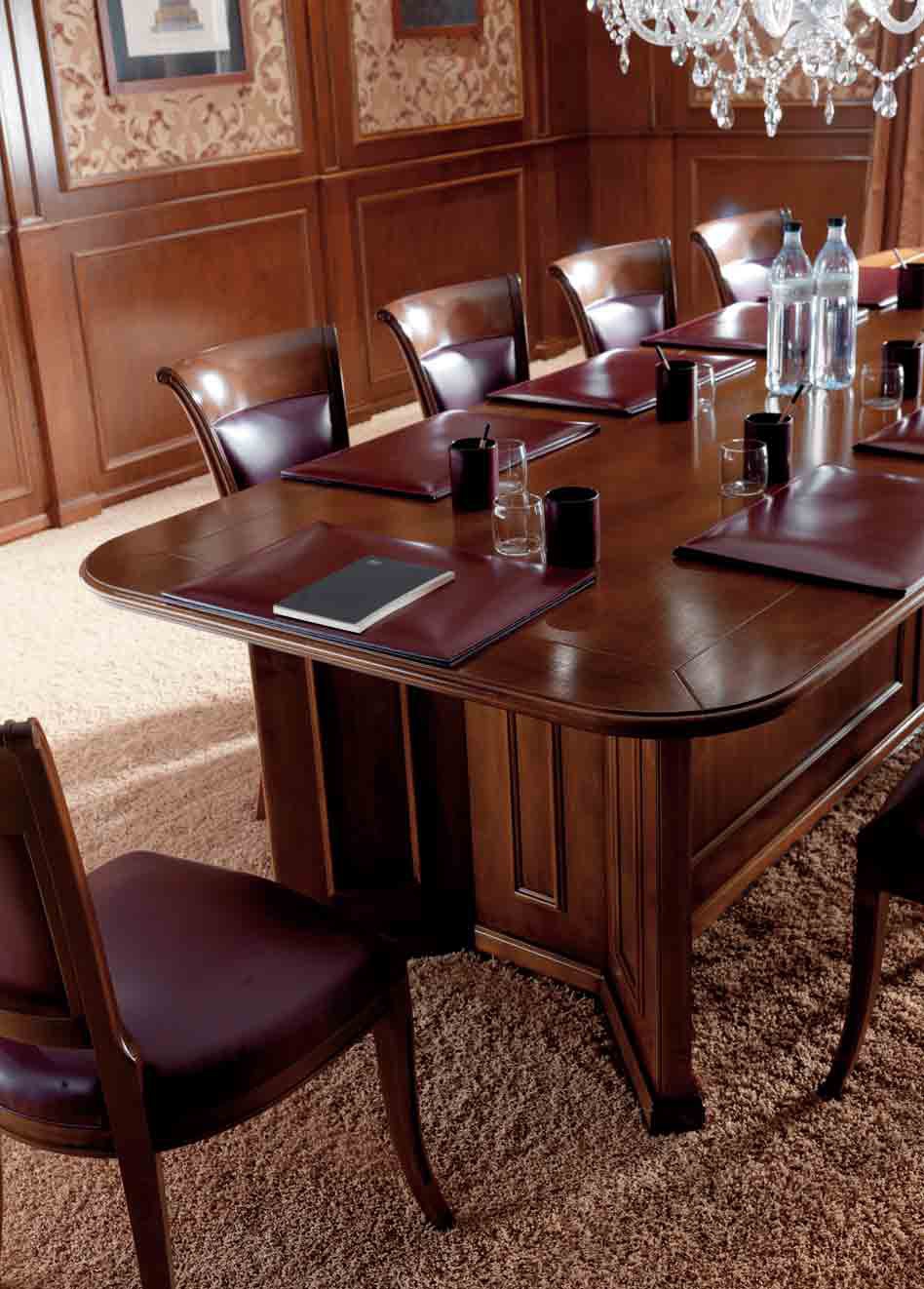 The table for negotiations or meetings from the Italian manufacturer Formichi. Model in the classic style. Made of walnut array. High quality finishing technology. Manual polishing. Several layers of varnish. Before you apply the subsequent layer of lacquer is polished by hand previous. When varnished so the furniture dries, it is rubbed with natural beeswax.