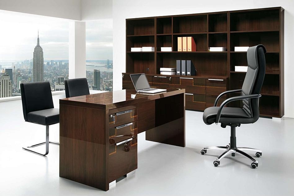 Headsets for the office from the Italian manufacturer Alf. Set includes wooden bookcase, Desk on a frame of wood, chairs with metal frame office swivel chair with armrests. The upholstery of chairs is leather. Accessories pull-out drawers - metal. Set is made in modern style.