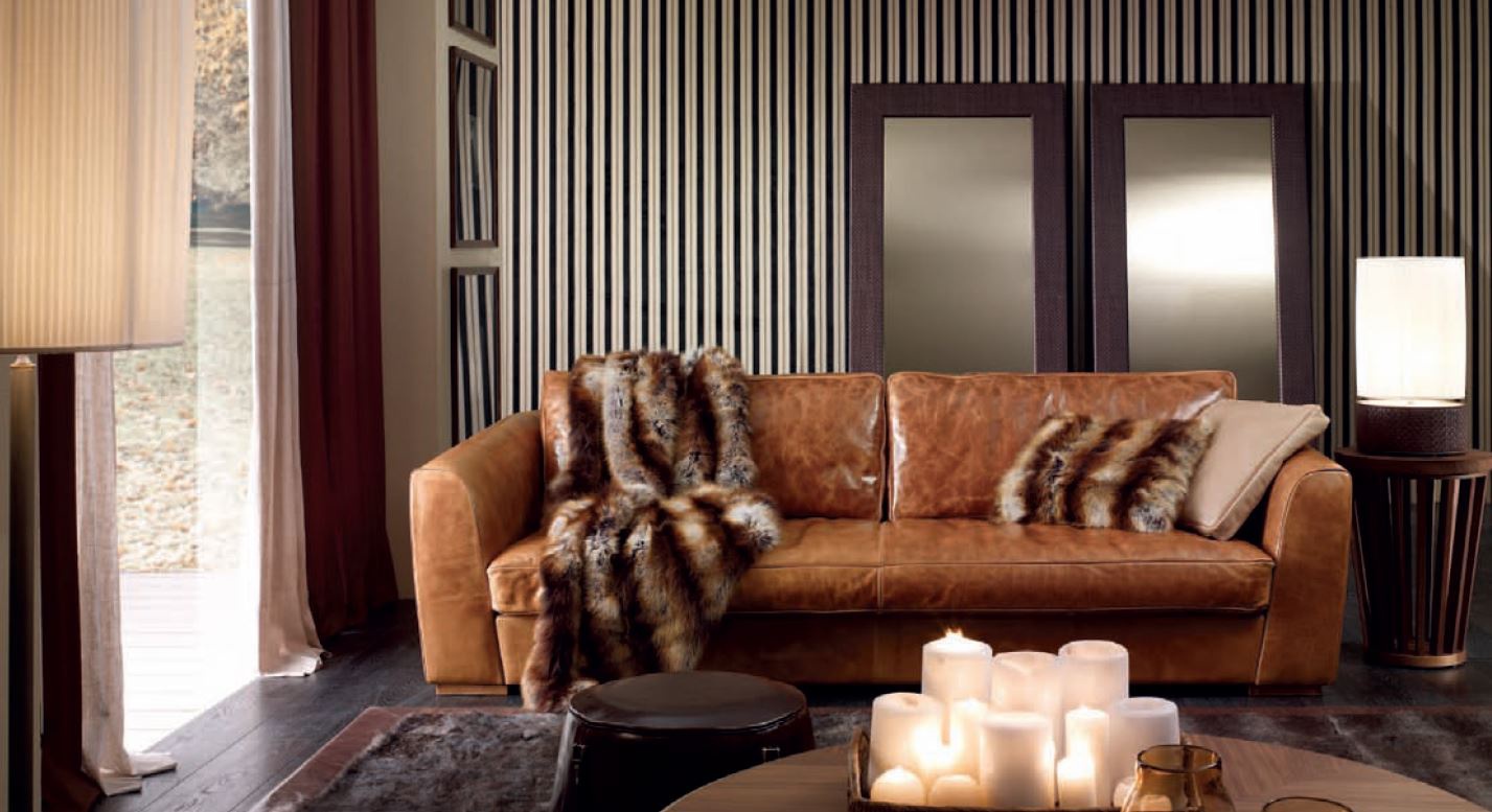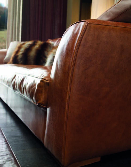 The four-seater sofa in leather upholstery genuine Mason, Ulivi
