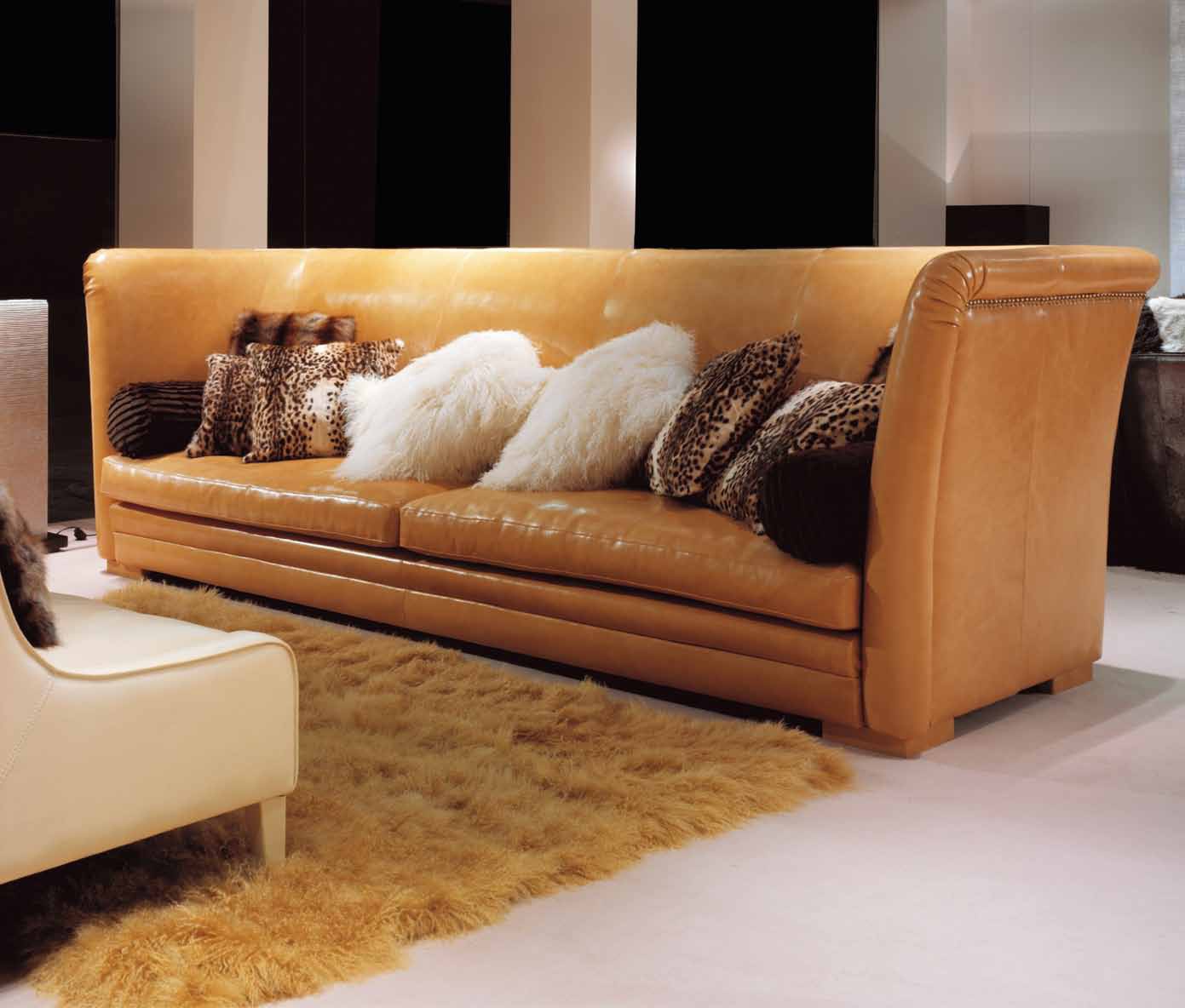 Quadruple the George sofa from Italian manufacturer Ulivi. The frame is made of beech wood. The leather upholstery. Filler - foam, goose feathers. Color finish offers light and dark shades. The model has a high back and armrests. Decor - cushions in fabric. The modern model will decorate the interior of Your home.