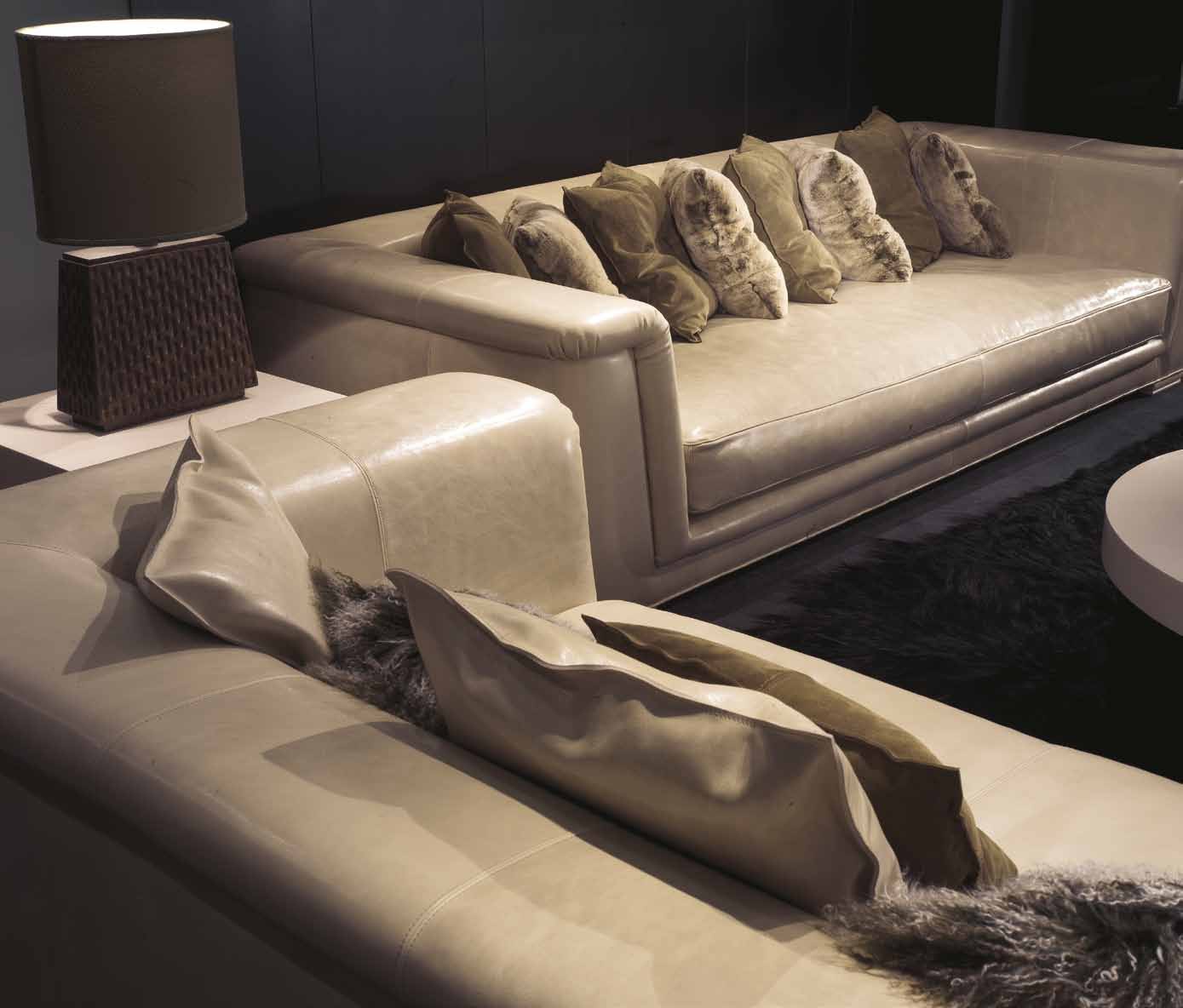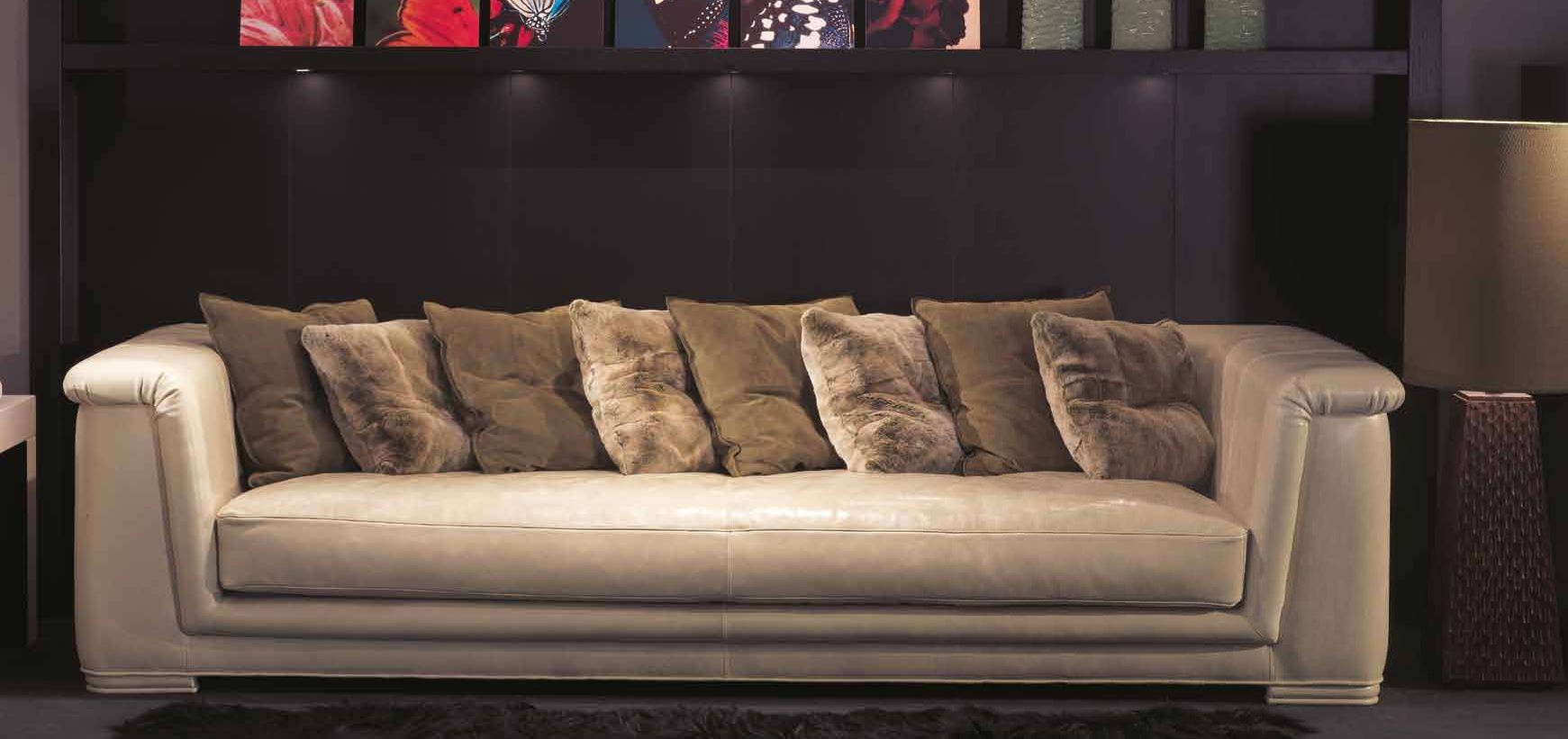 The four-seater Dylan sofa from Italian manufacturer Ulivi. The body is made of beech wood, completely hidden. Legs square shape made of wood. The soft seat cushion filled with polyurethane foam, goose feather. Upholstery this model leather in ivory, you can choose from a catalog. Complement the design of the decorative cushions of different sizes. The sofa is designed in modern style.