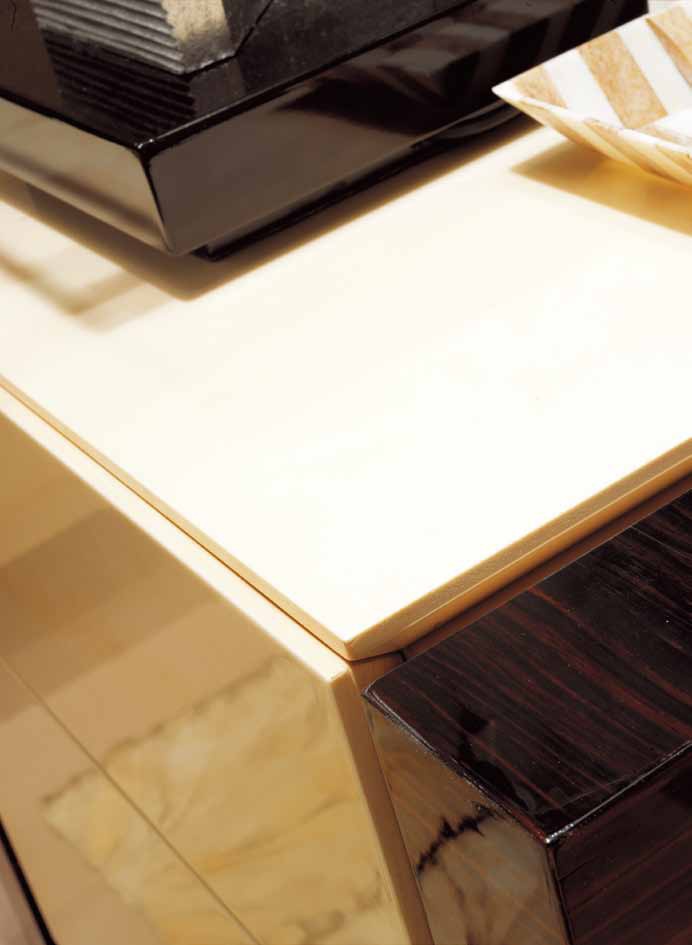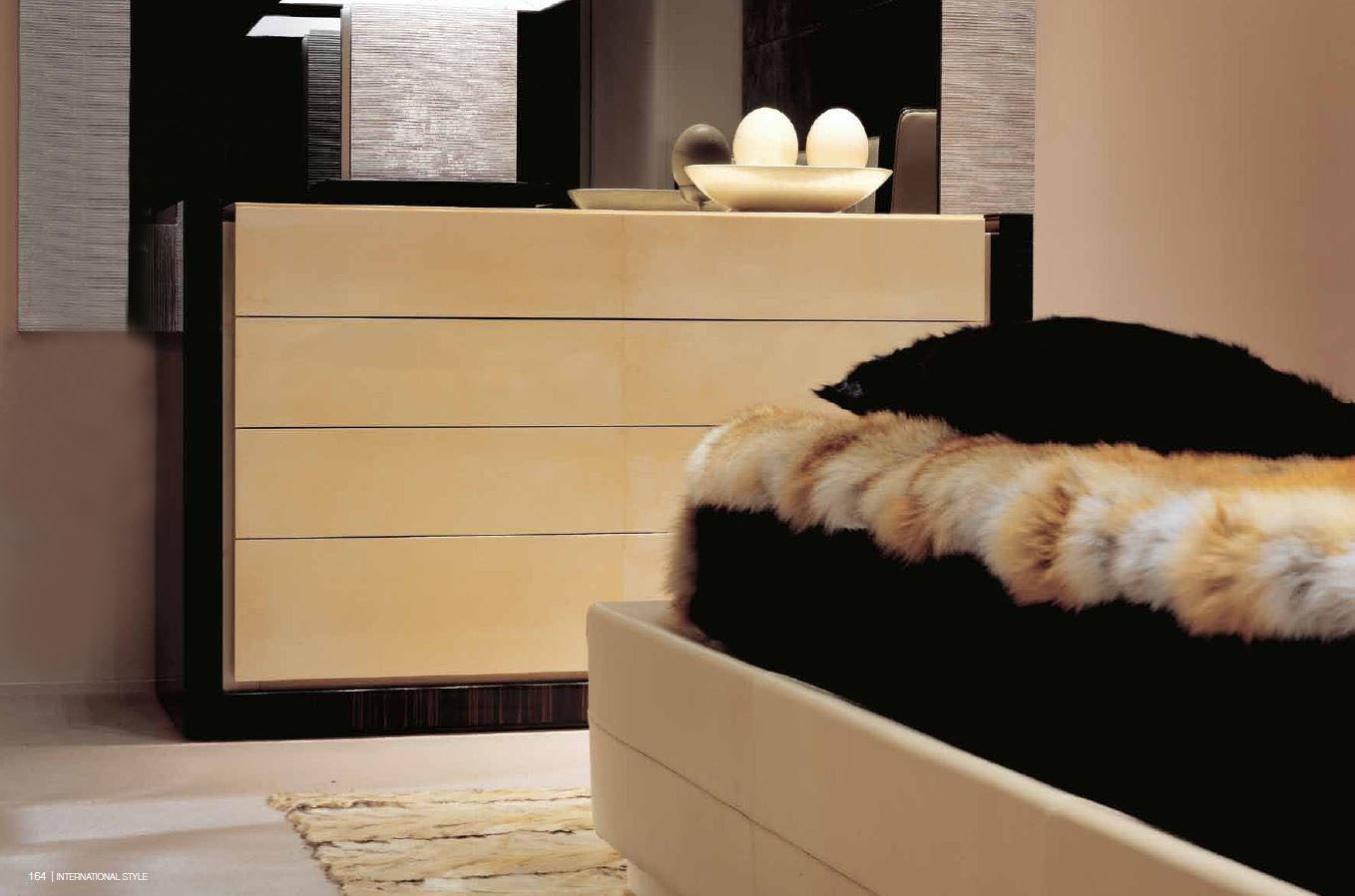 The Savoy chest of drawers from Italian manufacturer Ulivi. Model with drawers. The frame is made from spruce veneer ebony-Macassar. Top and drawers are made from maple multi-layer coating. Trim - leather. Color finishes available in combinations of beige and black colors. A chest of drawers in a modern style. Different practicality and spaciousness.