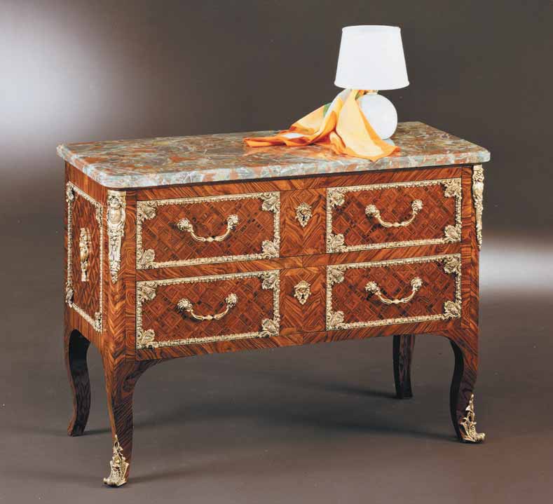 A chest of drawers on high legs from the Italian manufacturer Binda. The model includes three drawers. The frame is made of wood. Finish - gloss lacquer. The table top is made of marble. Decorative accessories made of metal. The model is decorated with inlays of metal of silver color. The chest is made in a classic style.