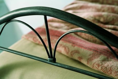 Cimabue bed from Italian manufacturer Bontempi Casa. Single bed. The model is forged with high headboard. Metal frame painted. Treatment under the old. Range of colors from a catalog.
