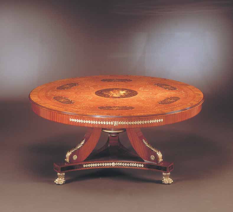 Round table from Italian manufacturer Binda Mobili. Model on a massive basis. Countertop round shape. Material - wood coated with lacquer. Decoration is the decorative carving covered with gold leaf and hand painting. Table executed in classical style.