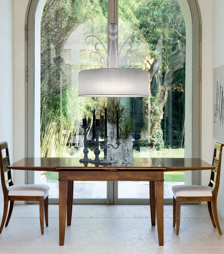 Dining table from the Italian manufacturer Bruno Piombini. The table is made from wood, varnished. Table executed in classical style, designed for six persons.